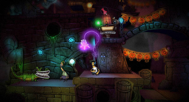 玩家要在游戏中完成各种有趣的解谜,你头上的触手将会是你解谜的最佳帮手,它可以帮你到达你无法到达的高度,而且还可以帮你撕下纸片等等。