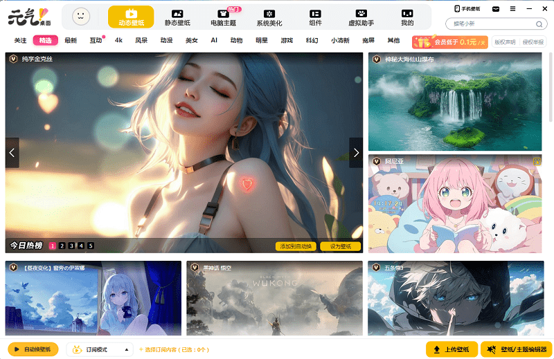 元气桌面最新版是专为年轻人打造的动静态壁纸及桌面美化的电脑应用软件,海量高清动静态壁纸下载使用。