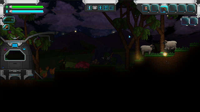 游戏的基本设定与大多数同类沙盒游戏基本类似,在建立人物之后就会从太空舱降落在一个奇异的星球上,地图是随机构成的,玩家将利用手边的工具在这里生存下来,你会遇到许多奇异的生物,有些还会对你带着敌意,也会遇到很多植物,矿物,收集他们吧你一定会用到的,利用这些采集到的材料制造更多的道具,来让自己生存下来。