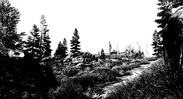 游戏给人第一眼的感觉就是它神奇的画面,你的显示器没有问题,你的显卡也没有问题,游戏所有的画面不外乎黑白红三种颜色,不知道玩家们是否能够接受这样的设定。