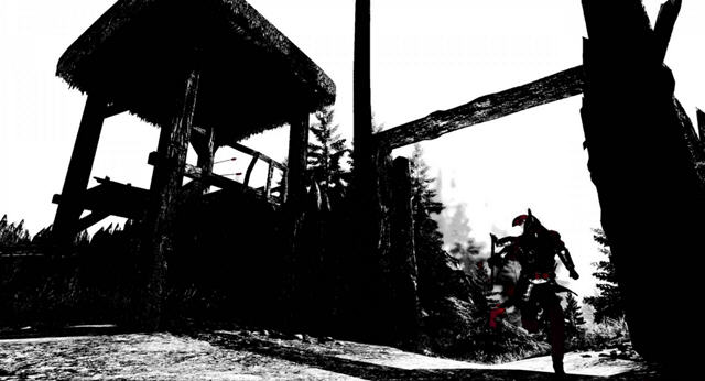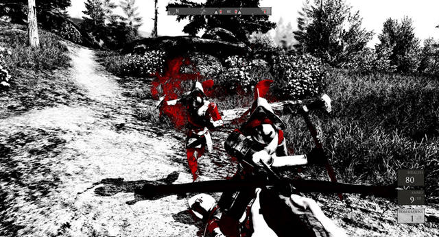 游戏的猎奇画面想必会让很多的玩家都无法接受,黑白的树林,黑白的海岸,要不是敌人脸上那两个红色的眼睛,恐怕他就要和大自然融为一体了。
