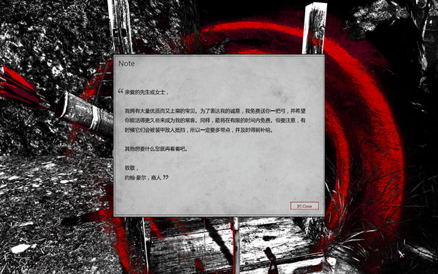 木桩上面会有很多的提示给玩家,如果英文水平还不错的玩家可以解读一下。游戏中的武器种类比较多,不过大多数比较古老,没有什么现代化的枪炮等等。