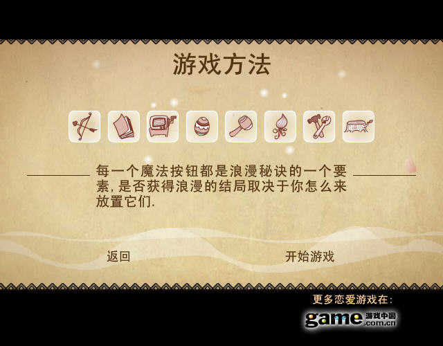 浪漫制造者是一款很小的解谜游戏,游戏的玩法很简单,总共有8件东西,玩家可以用任意书序来放置他们,最终完成剧情。游戏使用简单的构图却给人留下深刻的印象,简短的剧情让人感觉温馨。