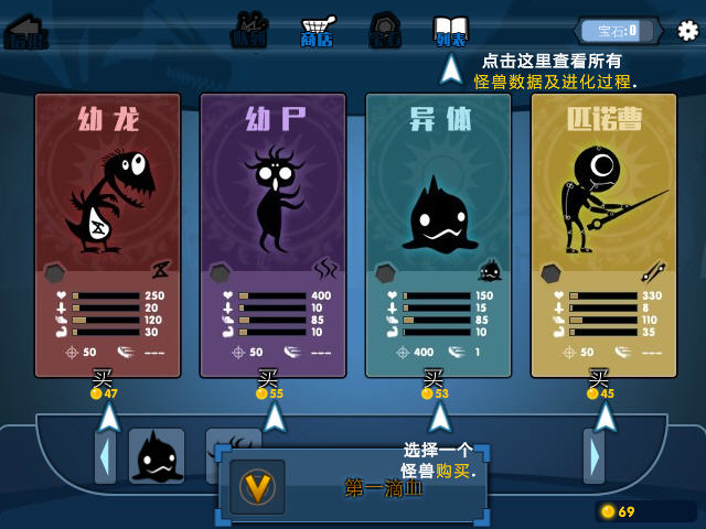 游戏初期会有简单的介绍关卡,来让玩家熟悉游戏的各个设定,内容还是很丰富的,怪物有5个大的进化系和许多野生怪物,再加上强化,宝石等系统让游戏在养成方面颇有看头,而怪物除了各自的战斗属性不同意外还会给队伍带来不同的加成属性,这让编队的取舍也更为丰富。