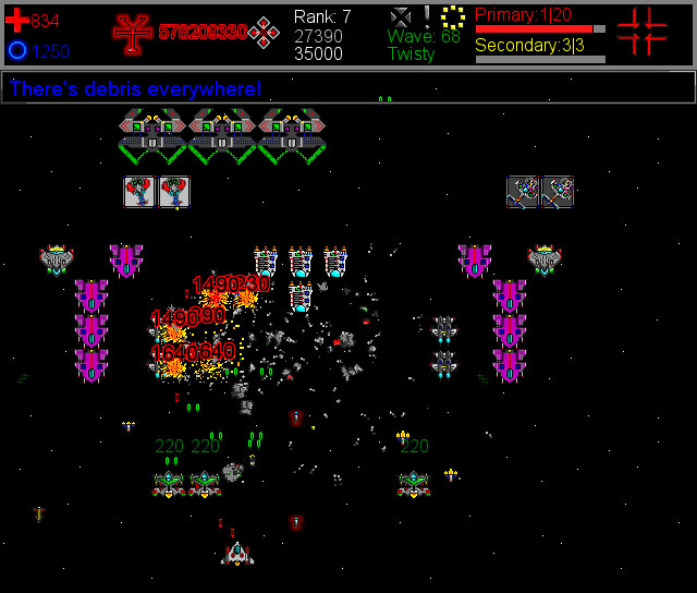 《街机太空大战》是一个了不起的游戏,你不必摧毁每波的敌人,你可以获取许多的特殊能力,如盾牌,联盟船只等,科技树有近60种技术,可以让你挑战至最后一波的敌人。