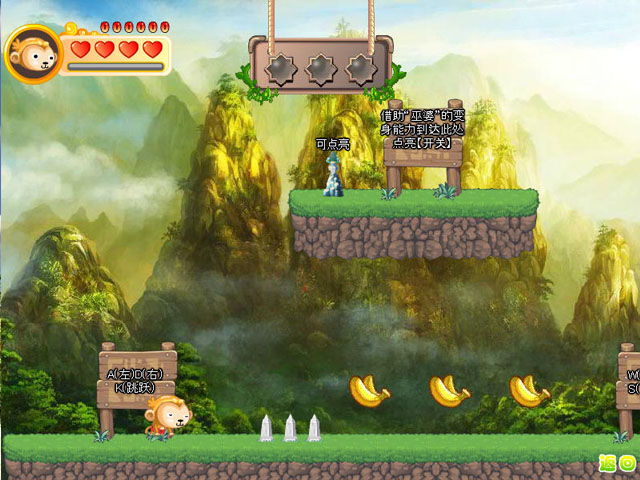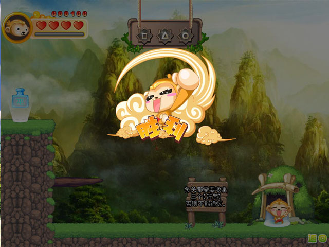很可爱的小游戏,各种独创的机关也都十分有趣,还能通过许多变身药剂来变成各种奇怪的东西,比如巫婆(孙猴子还能变这玩意?)。不过记得在关卡中要收集到3种不同的符印才能通关哦,可别光顾着过机关忘记拿符印了。