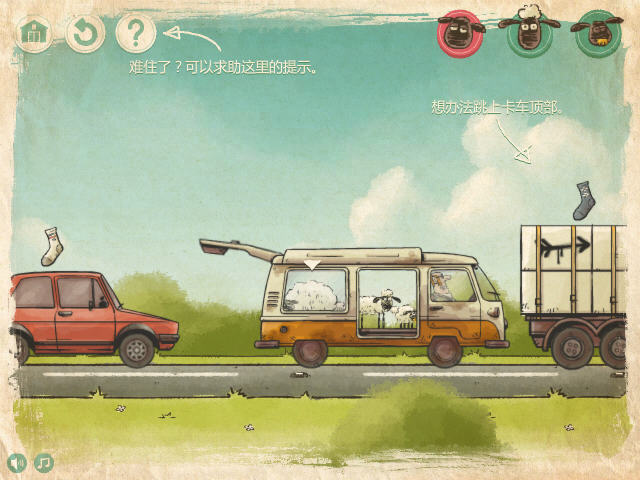 三只可爱的小羊形态各异,各自都有不同的作用,需要互相配合,比如大羊跳不高,但是可以踩在瘦羊身上跳,小羊很轻可以踩在气球上,等等。记得在通过关卡的时候还要收集场景中的道具,袜子什么的,很有趣的一款休闲益智小游戏,希望大家喜欢。