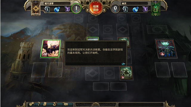 ‘魔法门:冠军对决’不同于炉石传说,而是更像‘万智牌’或者‘游戏王’,玩家需要操作英雄统率你的队伍,并借助各种特殊卡牌(法术、命运和事件)来辅助你击败对方英雄获取胜利。具体地来说,就是针对行动点数召唤并部署作战单位,最大效率地发挥己方回合中的战斗力;根据战局走向,合理运用法术,并从命运和事件卡牌中获取优势,如给己方使用增益魔法,用减益魔法削弱对手等。