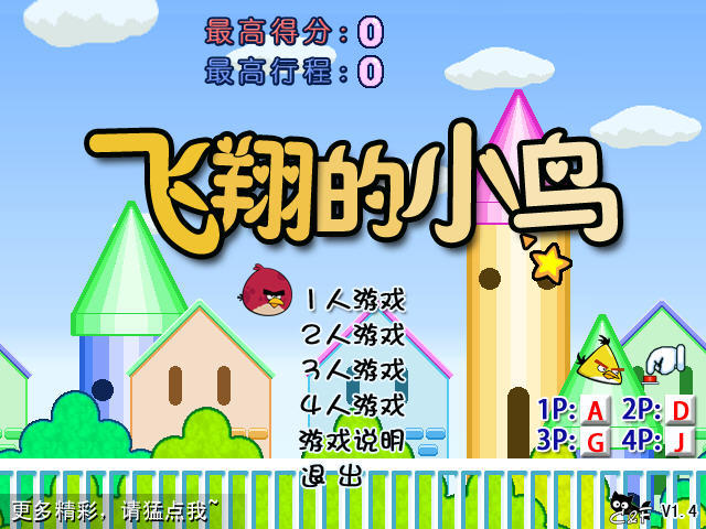 像素鸟在大火之后也有类似的游戏在不断的出现,本作是玩家自制的一个作品,使用‘愤怒的小鸟’做素材,可以4个人同时进行,并在游戏中加入了各种道具,在飞行超过一定距离之后甚至还有隐藏关卡,快来挑战看看吧。