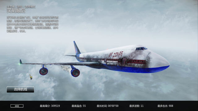游戏中玩家要扮演客机上的飞机师,不巧的是所有的乘客都感染上了僵尸病毒成了不死的僵尸,这些傻帽僵尸还都兴奋得爬出飞机去大闹,看着架势是要把飞机给拆了呀!身为一个大活人飞机师怎么能让这种事情发生?于是操控飞机来个倾斜空翻极速狂飙,把这些傻帽们都给我甩下去。