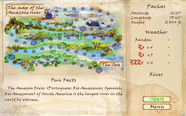 《亚马逊游记》是 Indigo Gem 带来的一款轻松惬意的匹配消除游戏。进入传说中的亚马逊地带,深入峡谷和森林之间,欣赏着如画卷般优美的湖光山色,和一群群可爱的小鱼一起玩游戏。