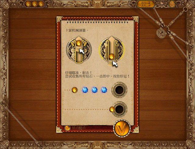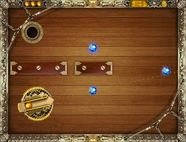 在游戏的每关里,玩家需要用弹弓射出一个金属小球,在这之前要算好力度和角度,有点台球的感觉。小球通过滚动进洞就算胜利,但是要碰到三颗钻石才可以拿到三星。