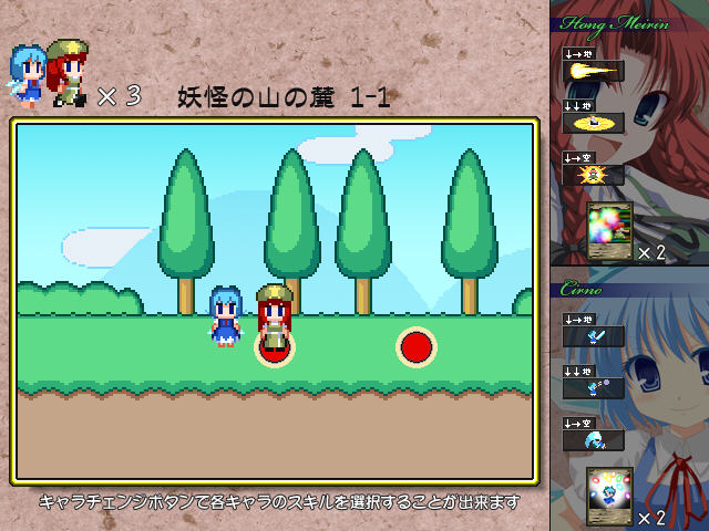 《美铃和琪露诺的妖怪山大冒险》是一款以东方系列中人物制作的横版格斗冒险游戏,游戏的地图很像超级玛丽的风格,可以切换美铃和琪露诺两个不同的角色,两个人的技能都不相同,击倒敌人之后可以收集符印来获得积分。