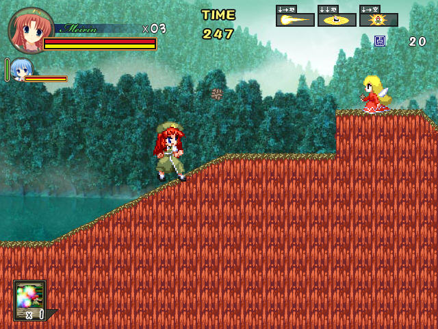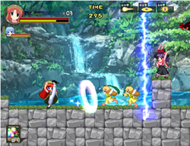 很可爱的东方妹纸大冒险,类似超级玛丽的地图,玩法却是横版街机格斗类,注意在想办法跨过陷阱,击倒敌人,收集符印的同时还要记得尽可能快速的完成这一切,因为每一个关卡都是有时间限制的,来挑战你的反应极限吧。