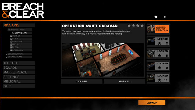 《突破行动》是Mighty Rabbit Studios制作的一款策略游戏,各国的特种部队经常被搬上银幕,而在本作中,玩家可以挑选一共4名队员来组建自己的特战队来执行各项反恐或战略任务,初期可以选择人物的头像,特殊能力等。如何组合,如何制定战略才能顺利完成任务,就靠玩家的智慧了。