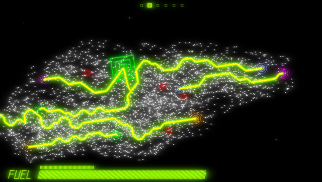 《跟踪向量》有着现代矢量风格的画面,而且很有动感。这个游戏简单易学,只需要上下方向键调整方向即可,但又很难掌握。你的飞船要通过几何图形的游戏,一路上尽可能多的获取燃料,保持飞船最大的加速度。简单的控制可以让玩家专注于在逐渐复杂的网络里导航,收集燃料、规划路线,扭曲的时间会迅速消耗宝贵的燃料,一旦燃料耗尽游戏就会结束。是个很考验玩家反应能力的游戏。