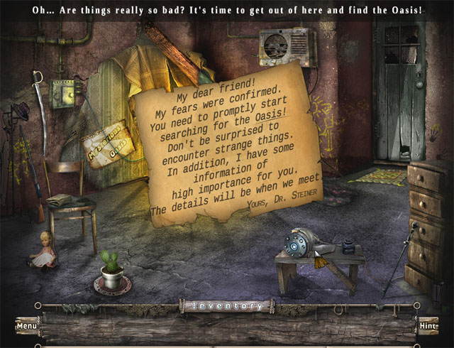 《神秘绿洲》是BIGFISH发行的一款AVG解谜游戏,游戏采用单词找物和解谜小游戏相结合的方式进行剧情,讲述了一个末世之后挣扎求生的主人公,在听说有个神秘的绿洲之后决定踏破危险前去一探究竟。