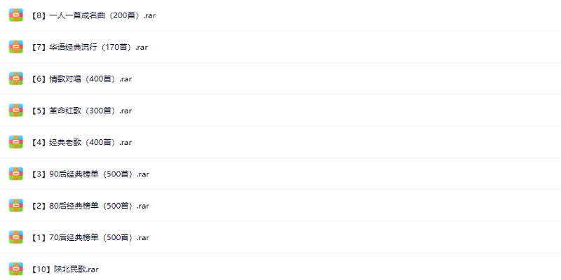 经典流行歌曲500首完整版为广大的歌迷朋友整理了以前的一些经典流行歌曲,为常用的mp3格式,包括老歌合集、华语歌手经典歌曲、经典民谣、英文歌曲、粤语经典以及各种车载dj舞曲、纯音乐等,种类多,不管是怀旧听歌、开车提神还是睡前催眠均适合!