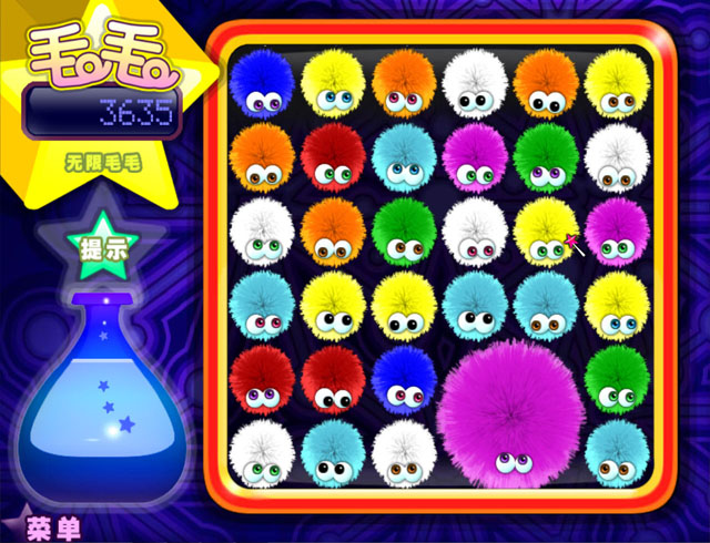 毛毛球游戏,五颜六色,毛绒绒的,还有两个眼珠子呢,还能转来转去的,这么可爱啊,就叫她毛毛吧。