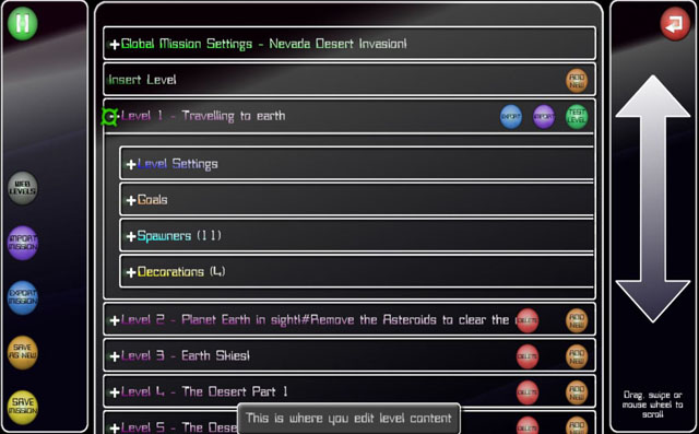 游戏的画面一般,界面也不算很友好,操作时需要用A/D调整左右方向,W/S再进行前进和后退的移动,加上有惯性在里面,操作起来有点晕,对于没接触过这类游戏的人来说可能需要一点时间适应下。可以方便的设计自己喜欢的独特关卡是这游戏的一个亮点,对于太空题材爱好者来说,这款游戏不容错过。