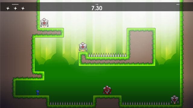 这是一款快节奏的动作闯关游戏,跟随着动感的背景音乐,从玩家开始动作起会出现10秒钟倒计时,玩家必须在10秒内消灭所有的机器人,当然每关卡充满着各种陷阱。想考验你的反应能力,那么这款作品,你不能错过。