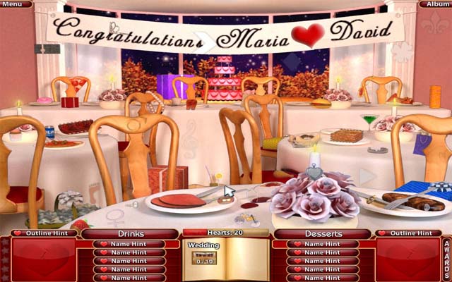 浪漫的爱情主题,粉红色的色彩搭配,无时无刻的向玩家们传达出温馨浪漫的感情,经典的约会场景和具有代表性的物体,完美的烘托出的故事的主题,基于传统的单词找图解谜,玩家们可以轻松的寻找到,为了方便玩家体验,游戏很贴心的将提示按顺序逐步出现。
