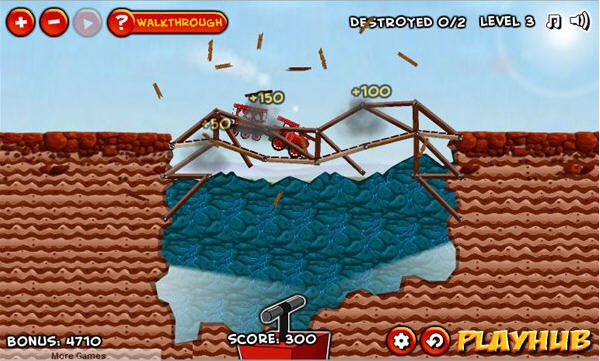 一款基于物理学打造的休闲类游戏,虽然画面一般,但内涵却非常丰富,十分考验玩家们的动脑能力,游戏包含二十四中关卡,玩家们所要做的就是找准爆破的关键点,如何以最少的炸弹毁灭桥梁成为获取高分的标准。