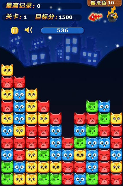 游戏看起来很简单,但玩起来却要玩家们耗费不少脑细胞,游戏没有时间限制,玩家可以深思熟虑。合理运用魔法道具可帮你刷新更高的记录。同时消除的同色猫猫越多, 获得的分就越高。