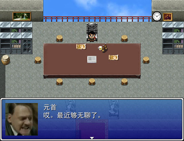 《元首之幻想乡之旅》是玩家自制的一款RPG作品,游戏中玩家将扮演第三帝国的元首希特勒,故事讲述的是元首去调查人员失踪事件的时候莫名其妙来到了幻想乡。然后得知失踪人数不多,才几十个,可是元首的首席却说几千几万个,这意味着什么?首席貌似有着不可告人的秘密,元首的冒险就此展开了。