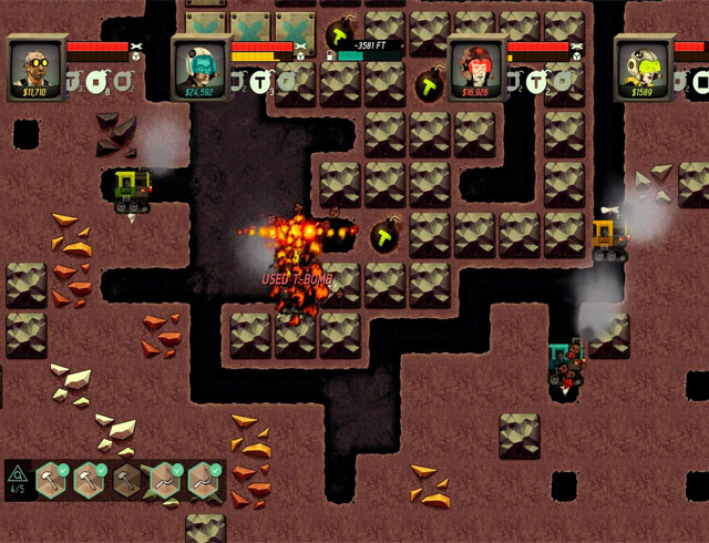 《超级太空钻地机》是原Flash网页游戏《太空钻地机》的续作,风格类似经典街机游戏《淘金者》。《超级太空钻地机》除画面、系统升级之外,另一大卖点在于支持四人同时游戏,并加入Drop in/out协力模式,其它玩家可以随时加入或退出。