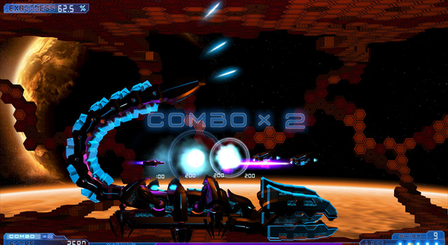 飞行射击游戏却十分像障碍跑酷游戏,各种地形都需要躲避,一会都放松不了,不过精致的湖面与激烈的音效也会让你一直振奋到GAME OVER。