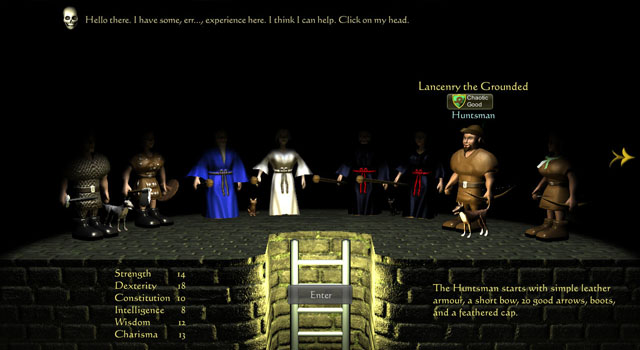 游戏虽然很小,但是东西还是很多的,超过250种的不同类型的物品,和超过100种不同的怪物,绝对不会让你有眼熟的感觉,更有8个不同的职业(选择人物可以点击右边的箭头翻面),然你自由的开始地下城之旅。