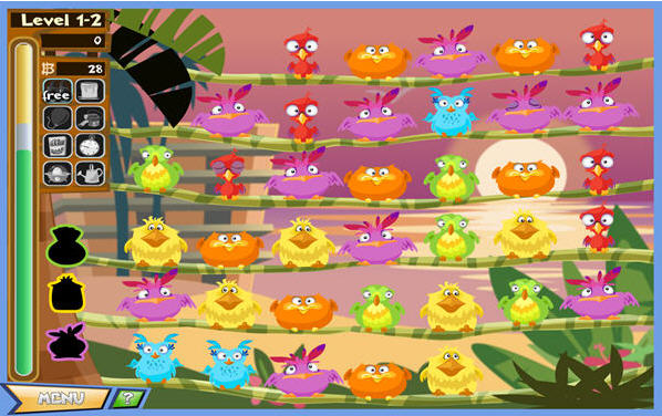 游戏采用的是整条拖动的消除模式,使三只以上相同的鸟排成一条然后消去,当消除到一定数量则过关,卡通感十足的纯2D游戏图像,展示出不错的效果,整体画面充满张力,具有的明亮鲜艳的表现.