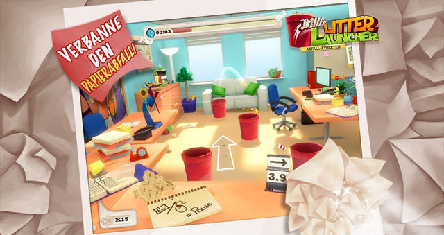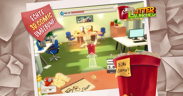 这个游戏与手机上的一款游戏非常类似,玩家闲聊无事,把纸团都往垃圾桶里来扔,通过控制你的力度和方向,确保每一个纸团都能够顺利入篓。