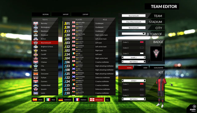 游戏的画面非常有质感,对球队的设置也非常细致,有很多的地方需要玩家去管理,不过这样一来全还未汉化的游戏可能对英文不是太好的玩家有一定的障碍,不过相信这是一款非常优秀的经营游戏。