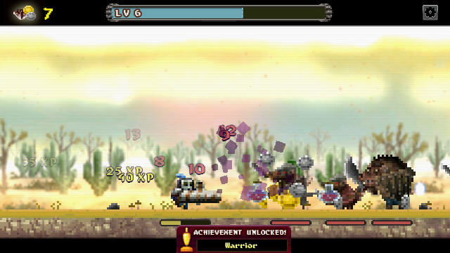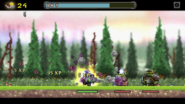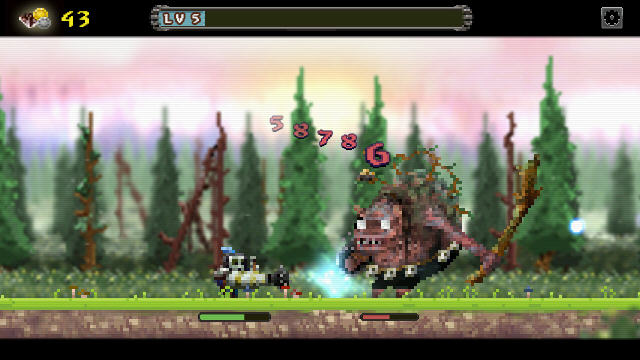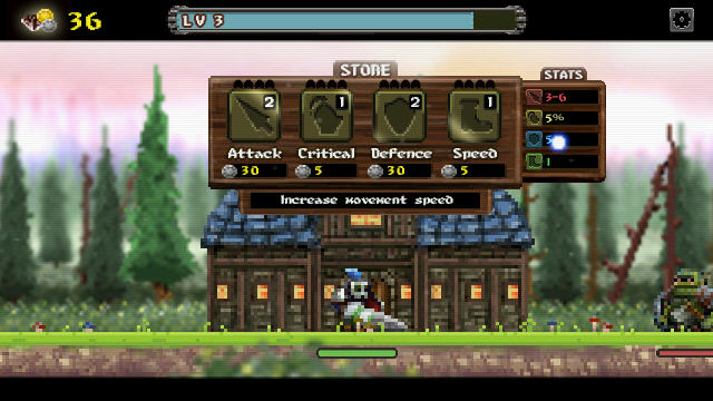 本游戏的玩法还真的是简单得无脑,就是单纯的冲刺、杀怪、抢钱……金钱用于升级,遇到杀不过去的坎就升级。另外,英雄在不战斗的时候可以自动回血,所以只要你不要一味死冲,基本没有杀不掉的怪。尽管游戏是无脑的级别,但像素的画面以及英雄的骑士造型却对我有另类的吸引力。