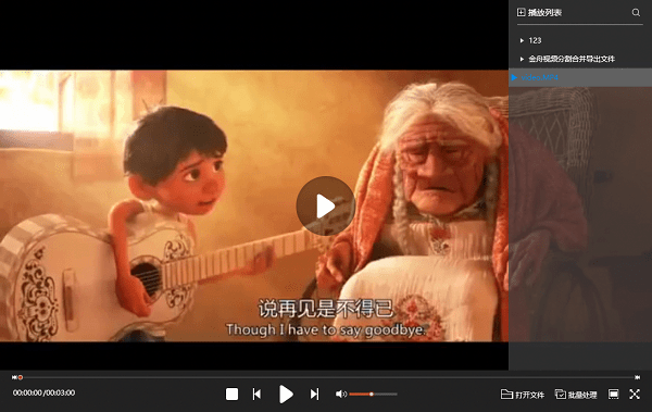 页面右侧是文件播放列表,点击“+”号键可直接打开下一个文件进行播放,文件播放顺序可以任意切换,利用鼠标选中文件后直接移动即可,同时展示视频的常规信息。