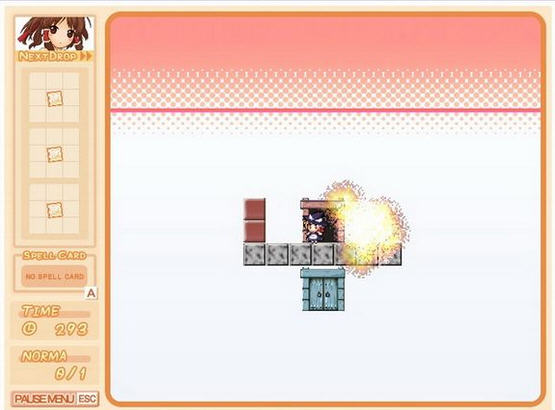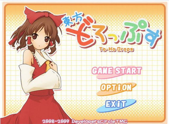 TMC GAMES在2009年时发布的解谜类小游戏《东方drops》。简洁、有趣、难度适中,角色造型和音乐都很可爱。游戏没有繁琐的故事背景,要做的就是让红白通过扔俄罗斯方块、符卡、爆炸符纸等物品帮助场上的角色从入口到达出口。