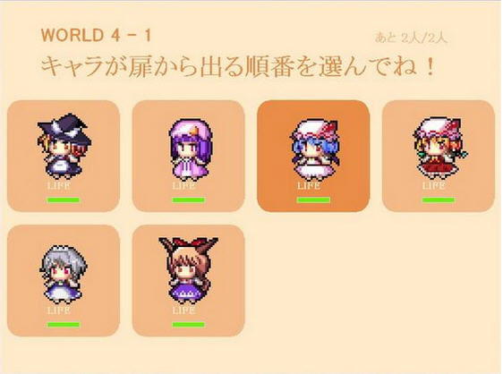 登场的小角色们会自己左右移动,遇到爬不过去的障碍物就会折返。小家伙们最多可以爬上一级那么高的台阶。当然,各个角色的移动速度是有区别的,不能指望帕琪和西瓜一样能跑。