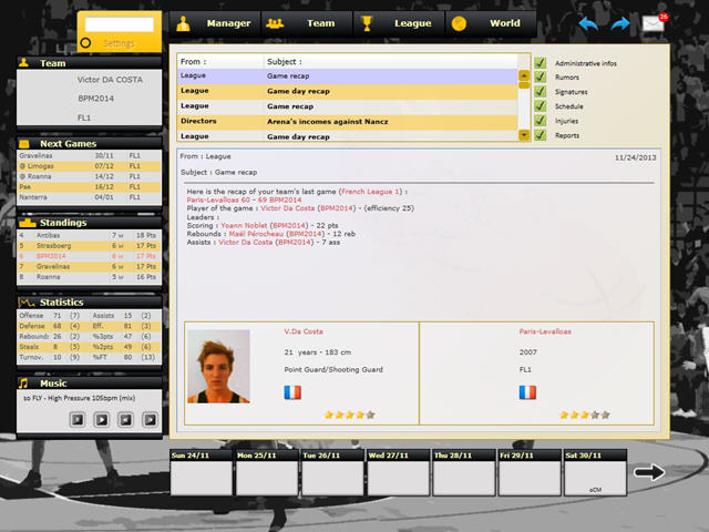 足球经理游戏目前被EA以及科乐美两家独大,而篮球经理游戏却相对来说比较少,这款游戏便是以经营球队为主的一款篮球经理游戏。