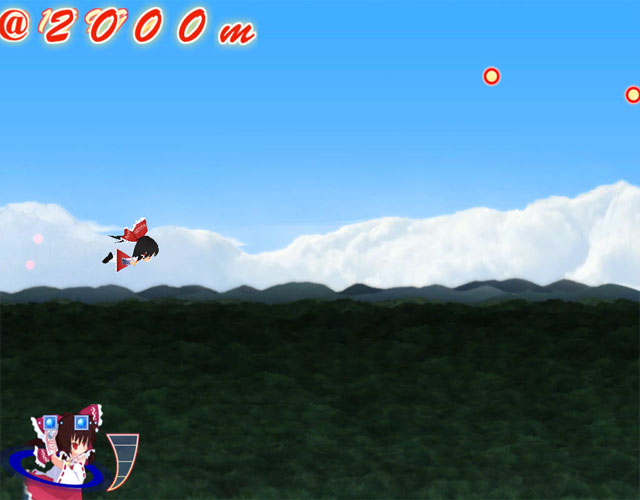 《东方飞天战》是一款类似跑酷的东方系列游戏,在游戏中玩家需要不断的按“上浮”键来保持人物的浮空位置,并调整来躲避迎面飞来的敌人,同时还会出现类似“狂风”等障碍效果,有一定难度,而在对战模式下玩家可以通过飞到对方上方使用“下踩”来消灭对手,比较有难度也很有挑战性的一款东方小游戏。