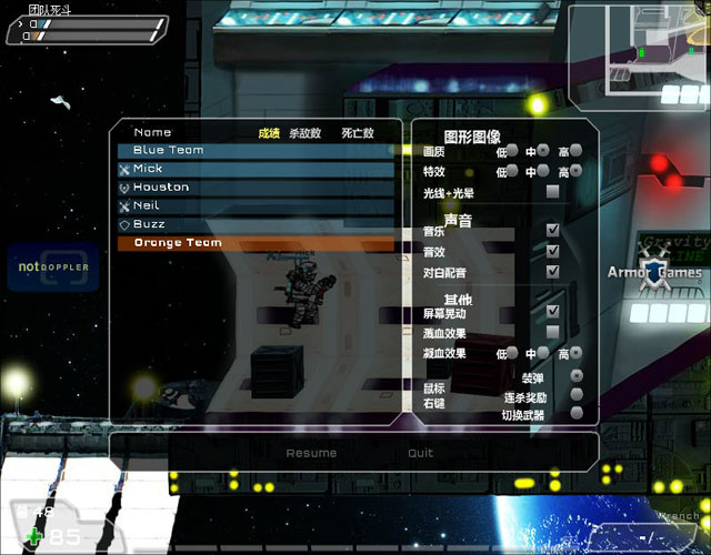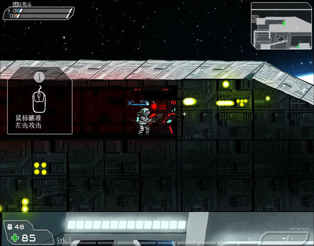 游戏上手简单,简介明了的中文介绍很容易就能了解所有的功能,精致的画面跟宇宙的场景给横版射击游戏新的活力,不过注意哦子弹是有限制的,可别扫射的太过疯狂哦,没子弹你可就只能换上小刀去肉搏了,不过要是操作的好刺刀肉搏的威力也是很强的哦。