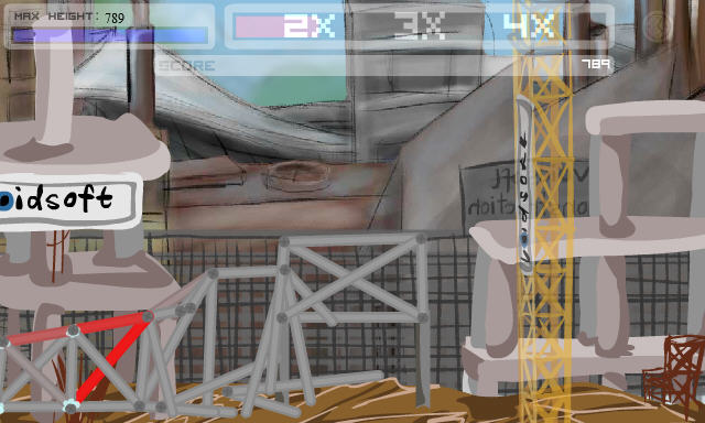 玩家的目的非常简单,将脚手架尽可能的堆高即可,跟粘粘世界的玩法非常的相似,但是对于线条长度的限制非常大,堆高了以后对手速要求很高。