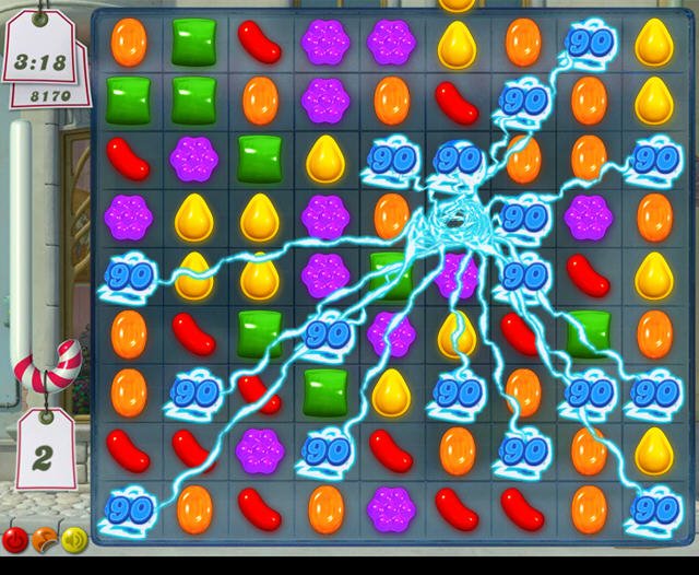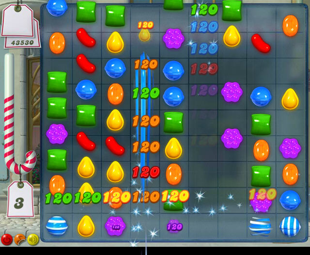 如果你一次性完成了4个以上的糖果消除,你可以得到很多的道具奖励,比如屏幕上所有同类糖果的道具,或者是一个会引起小范围爆炸的道具。