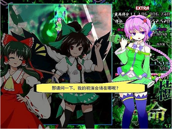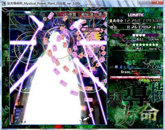 在那里,她们遇到了守矢神社的主神「八坂神奈子」,以及负责奉祀她的巫女「东风谷早苗」。经过询问之后才知道,原来这颗巨大的导命树之所以会出现,是神奈子为了开发新的洁净能源所造成的结果