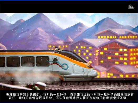 艾莉在网路上认识了查理,两人一见钟情,很快地,查理邀请艾莉前往他整修过的欧洲城堡,共度圣诞佳节。在月台上,茫茫人海中,艾莉一眼就认出了查理,他是个很英俊的男人,手上还捧着一大束玫瑰花。 (这次火车没翻呢~) 充满圣诞节气氛的小镇,雄伟华丽的城堡,浪漫的查理还准备了烛光晚餐。最后他们像童话故事中的情节一样,搭着马车来到古老且充满神秘感的城堡。