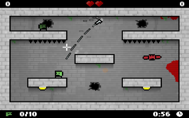 这是一款超级简单的游戏,因为它只需要玩家使用鼠标左键即可完成所有操作,但是同时它也是一款超难的游戏,因为你控制方向的方法是通过朝反方向射击子弹。