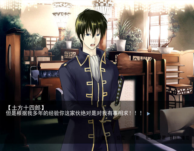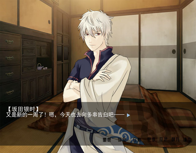 本作是一款《银魂》中银土向同人恋爱游戏,喜爱银土的朋友不要错过喔!开始时可以不要太急于求成,比如说,开始先讲讲冷笑话啊,要慢慢的,增加好感度,就同意交往了。