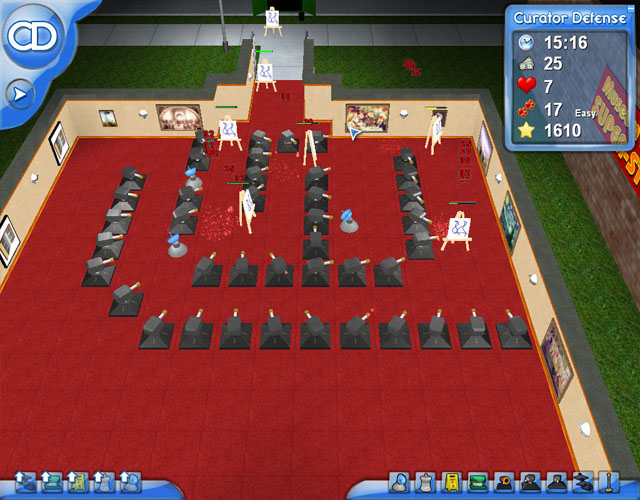 《博物馆守卫战》是Davidbhowe开发策略游戏,在国外2005年小游戏的评选中,它获得最佳创新游戏的第三名。游戏的主题是一群现代艺术品要攻占博物馆的展位,作为喜爱古典艺术的博物馆长要利用各种设置阻止这些现代艺术品得逞。玩家每关要在短时间内配置好守卫的装置,阻止敌人的进攻,游戏有很强的策略性”。