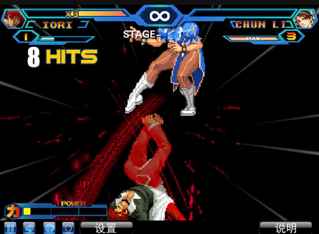 闪翼拳皇一直以来都有着不错的口碑,操作性上很有真正拳皇的味道,唯一可惜的是游戏的角色并不像拳皇那样丰富,而是收录了一些拳皇中最常用的角色。